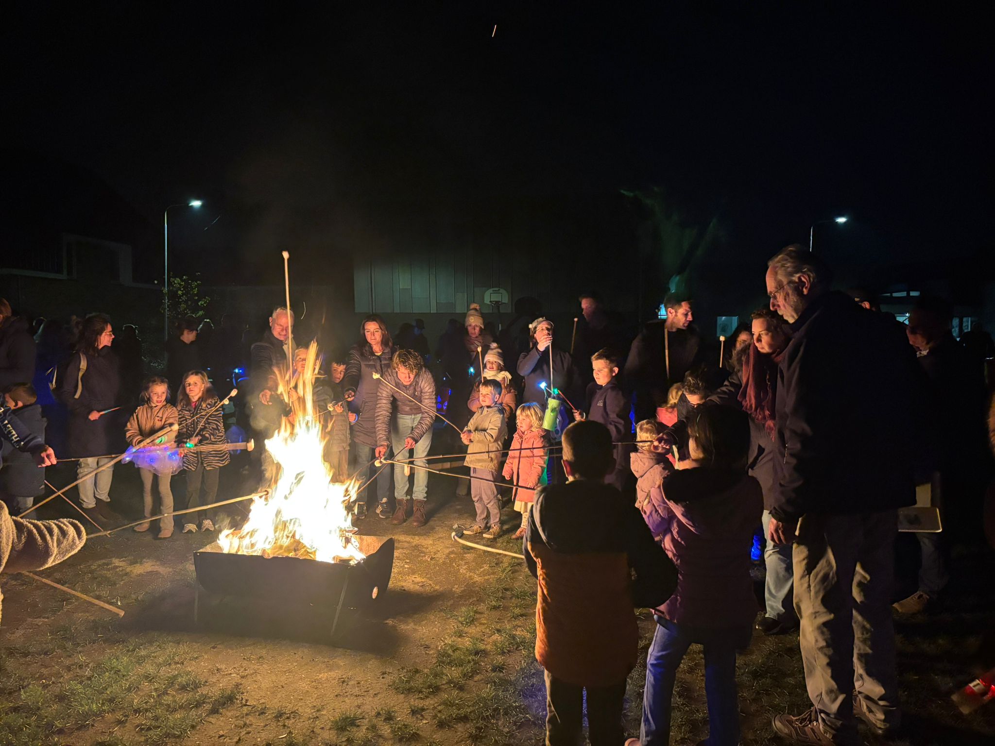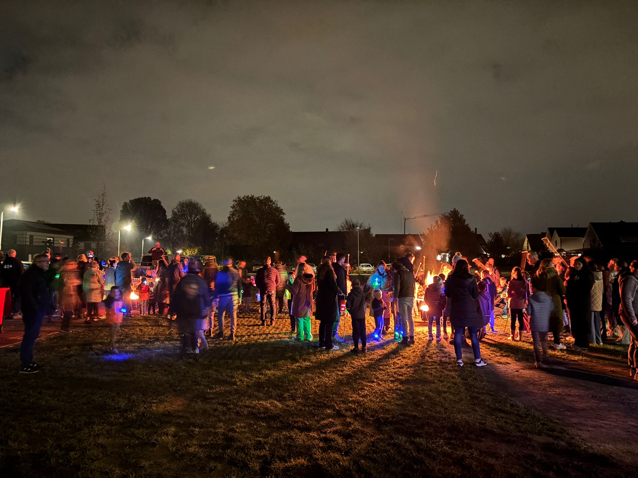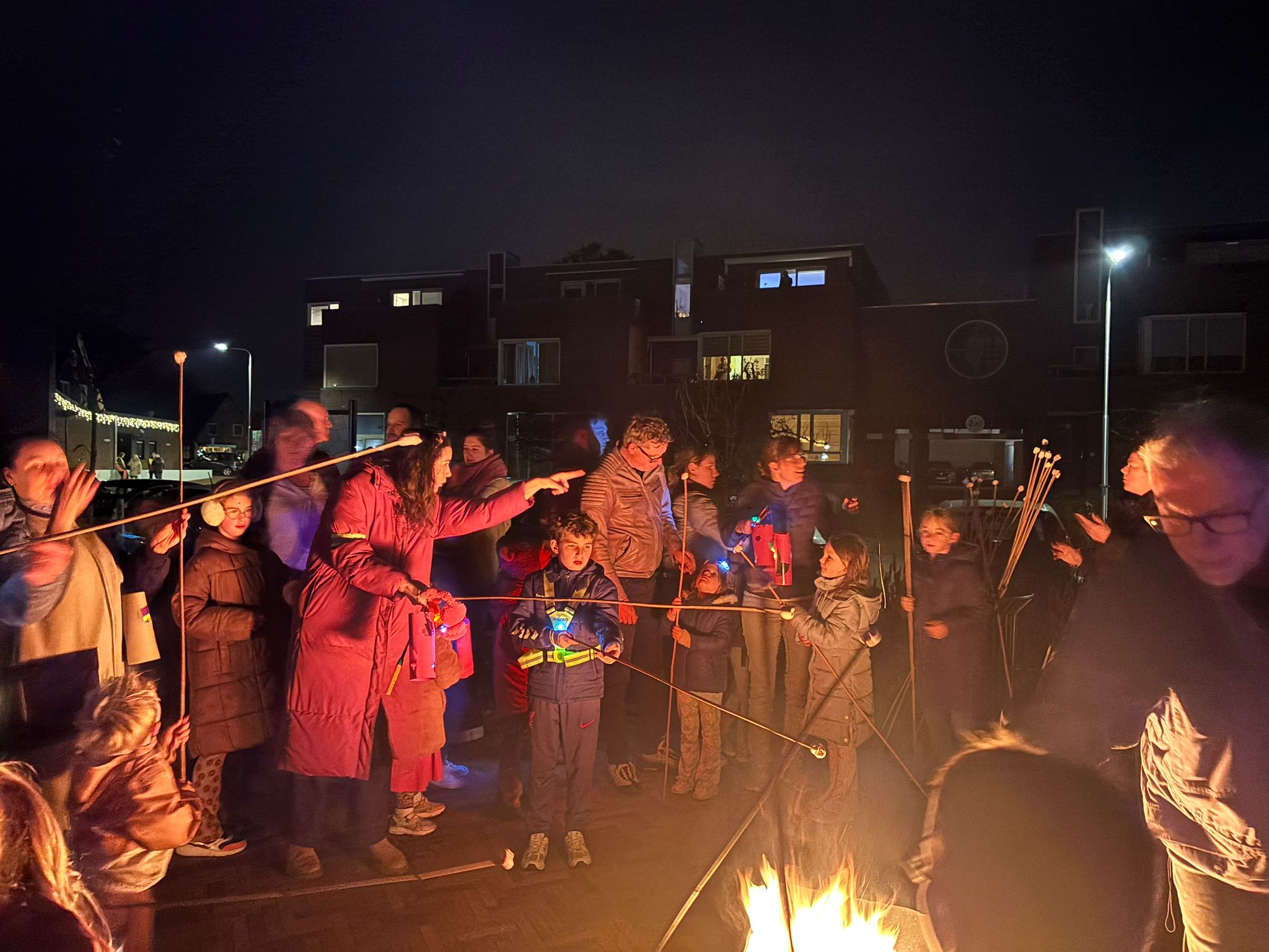 Op zaterdag 8 november trok weer een schitterende lampionnenstoet door Valburg. Vanuit de speeltuin in De Weemen liepen we langs de school en door de Bakkerstraat richting de kerk, waar we – zoals ieder jaar – de lichtjes in de boom ontstaken. Daarna ging de route verder door de wijk Molenzicht naar het vernieuwde plein bij Het Knooppunt. Daar stond de 40+-Scouting ons op te wachten met een warm vuurtje, heerlijke warme chocolademelk, marshmallows en koekjes.